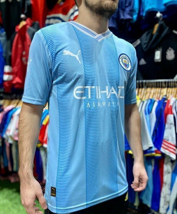 - Detalles Únicos: El escudo del club está termo sellado, asegurando durabilidad y un acabado impecable. Además, cuenta con la palabra CITY estampada en la parte posterior del cuello y el estampado del estadio Etihad en la parte delantera, lo que la convierte en una pieza de colección.