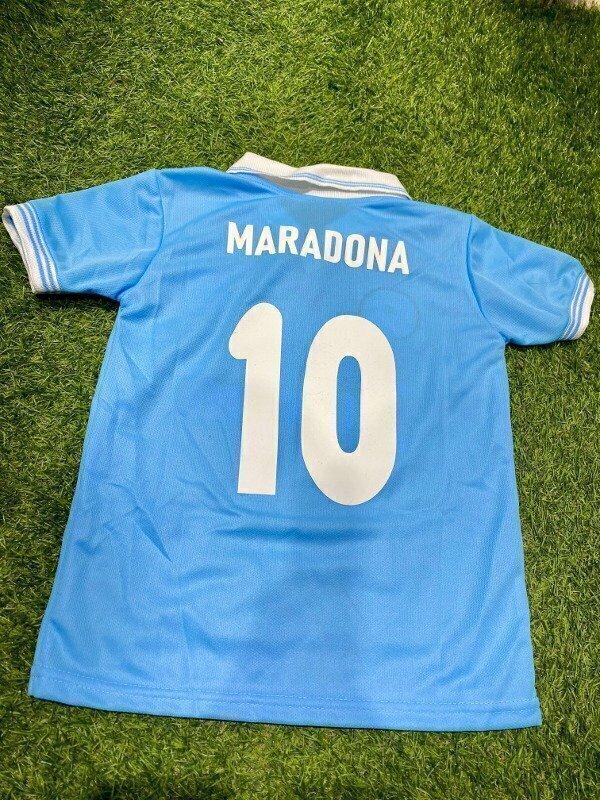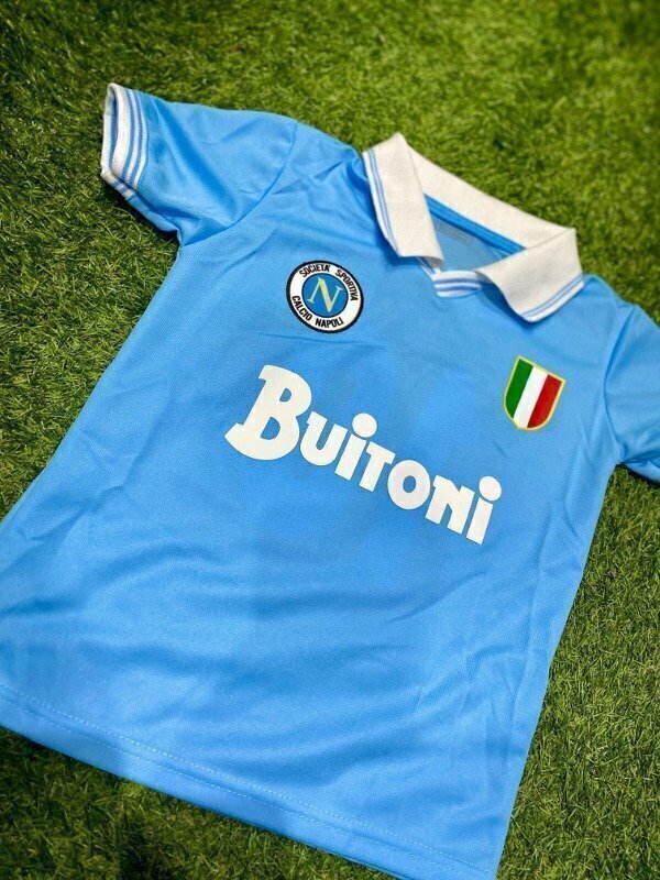 Revive la esencia del fútbol con nuestra exclusiva Camiseta Retro del Napoli "Maradona" para niños. Esta prenda es un homenaje perfecto al ícono del fútbol argentino y su legado en el Napoli.